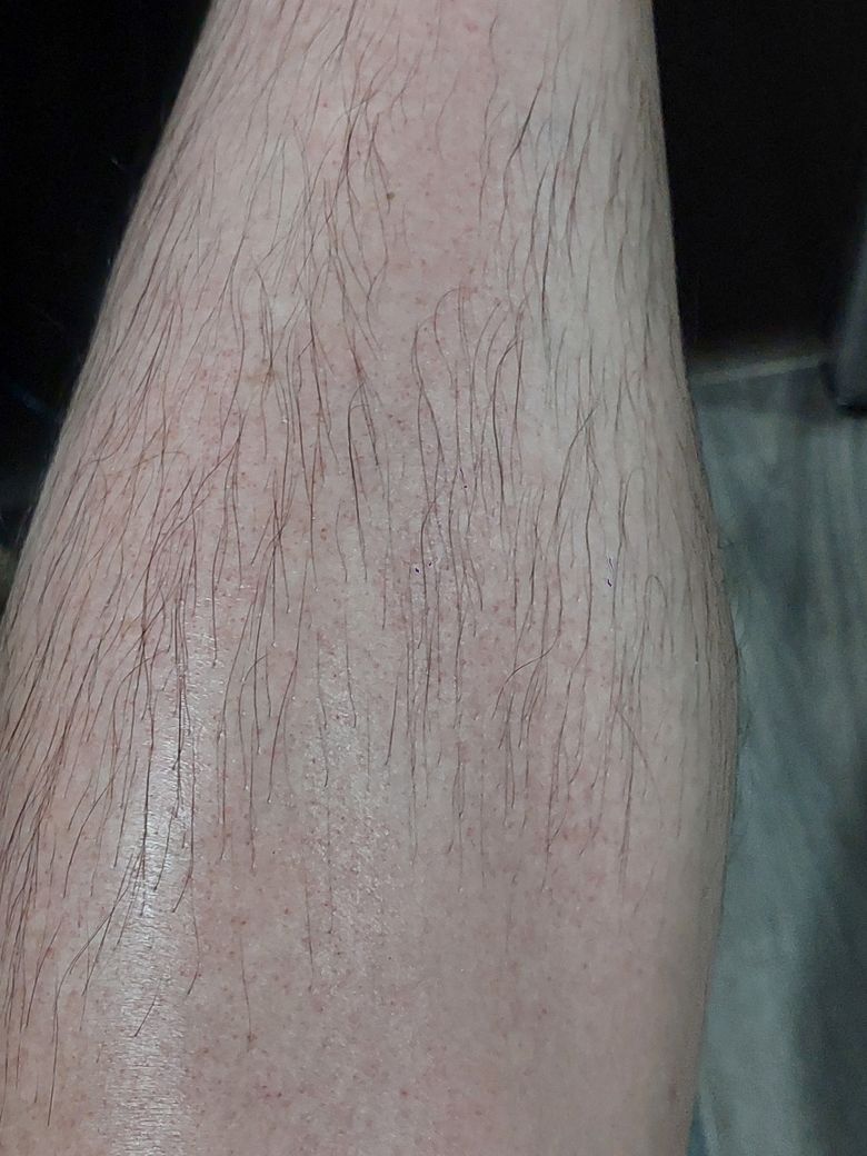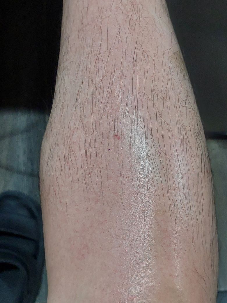 종아리 쪽에 일광화상을 입었습니다. 일요일 오후에 화상을 알았고, 차가운 물하고 알로에를 사용했습니다. 알로에는 하루 2-3번 정도 오늘까지 발라주었고, 오늘 화요일 오전 쯤 되니까 어느 정도 빨간 피부는 가라앉았습니다. 주로 종아리 앞쪽으로 햇빛을 받아 앞쪽은 아직 좀 빨간 상태입니다. 가렵고, 피부가 벗겨지는 건 없으며, 물집이나 수포도 없는 상태입니다. 다만 작은 붉은 반점들이 보입니다.