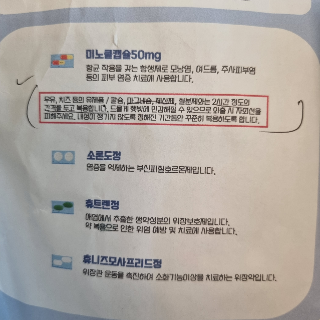 피부과약이랑 목감기약 둘다 소론도라는 약이 있는데 1개만 드시길바래요.