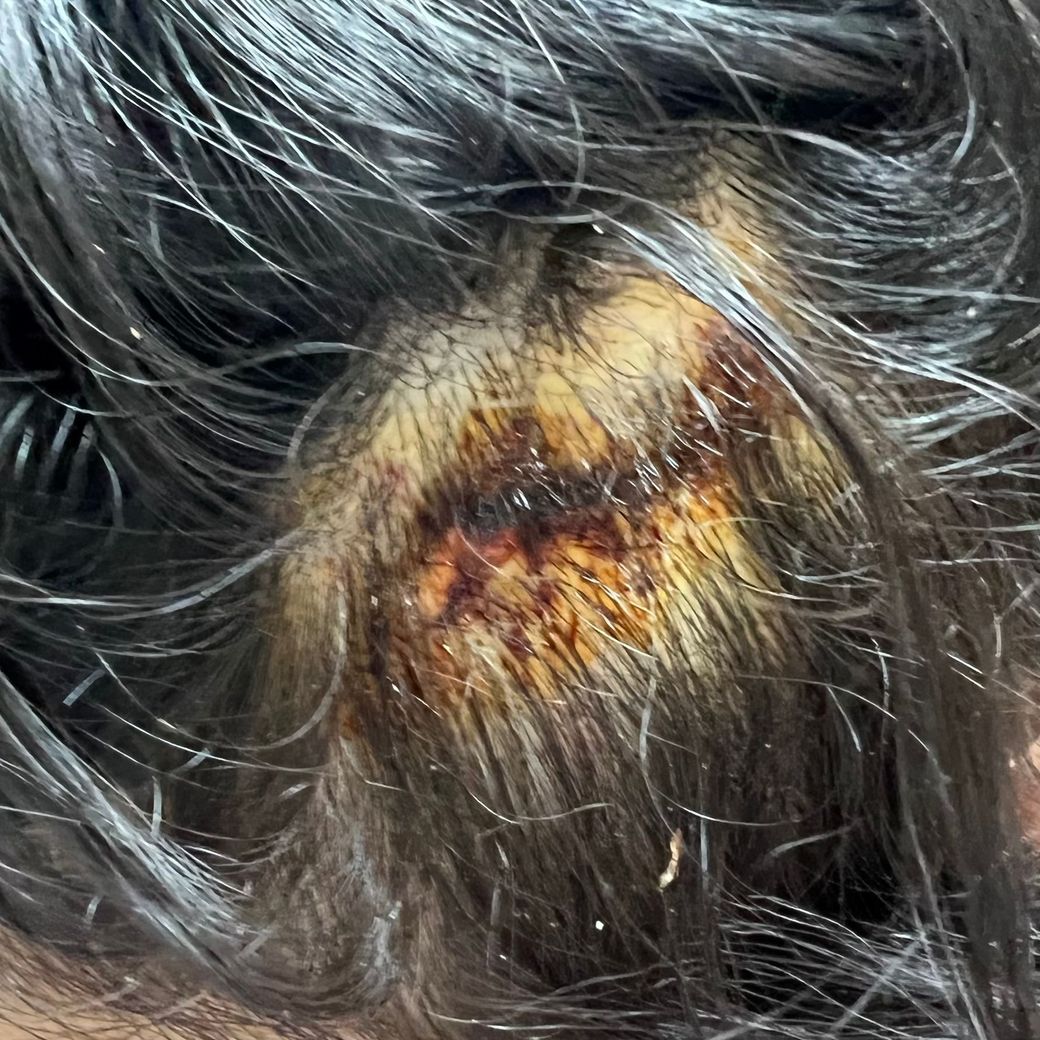 뒤에서 머리를 돌려차기 맞고 의식을 잃었습니다.