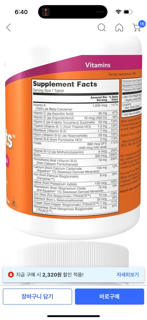 알파 리포익, 오메가3(내츄럴플러스), 칼마아디, 종합비타민