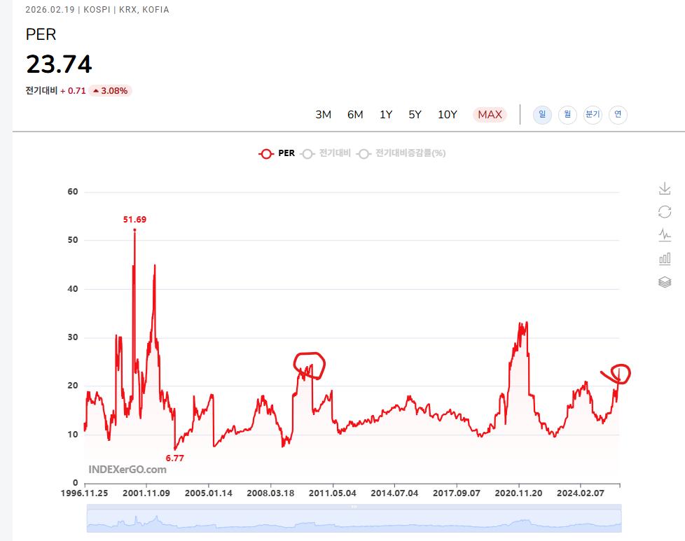 지금 코스피느 PER은 2010년 급등 후 급락했을때랑 비슷합니다. 뒤늦게 들어가서 혹시 떨어질까 노심초사하는거 보다는 소외받은 다른자산에 관심을 두는게 맞습니다.