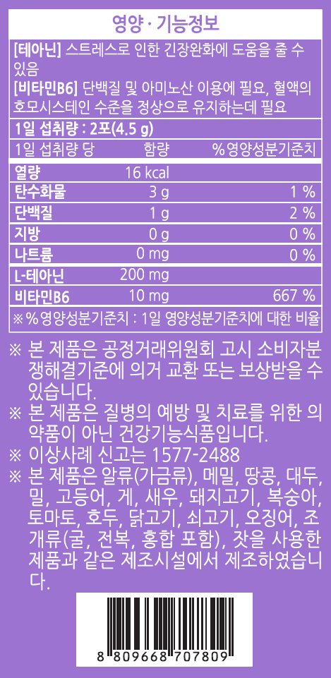 1) 이 영양제에 GABA 750mg, L-테아닌 200mg, 그외 비타민 B6 10mg, 마그네슘 등이 들어가 있는데, 생길 수 있는 부작용은 없나요?