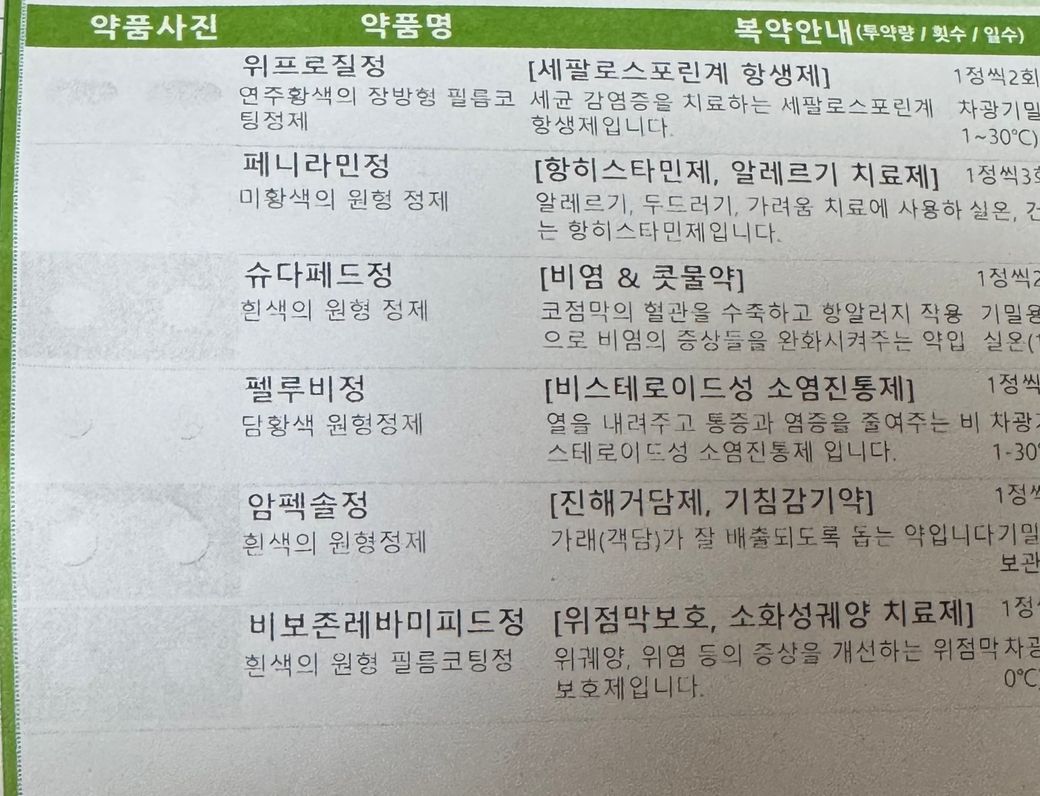 위프로질정 페니라민정 슈다페드정 펠루비정 암펙솔정 비보존레바미피드정 !!!!!! ?5개의 답변이 있어요!