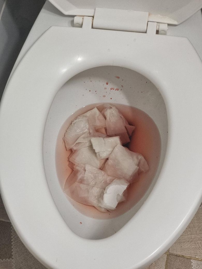 대략 3 4일전 쯤부터 대변을 보고 나면 항상 피가 섞여있습니다. 통증이나 가려움은 따로 없습니다.