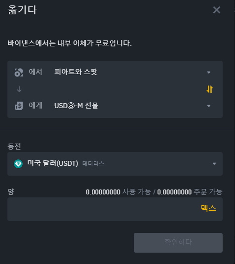 바이낸스 선물지갑에서 현물지갑으로 교환신청이 안돼요