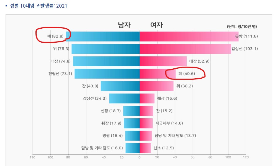 비록 전체 암 발생수로 본다면 폐암이 많지만