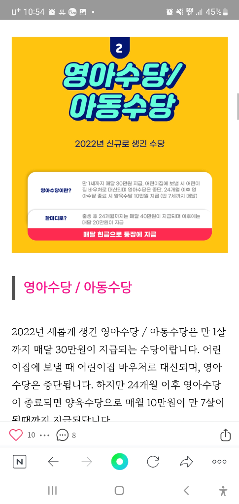 영아수당이나 아동수당, 첫만남이용권 등은 보통 국가에서 지원하는 혜택이라고