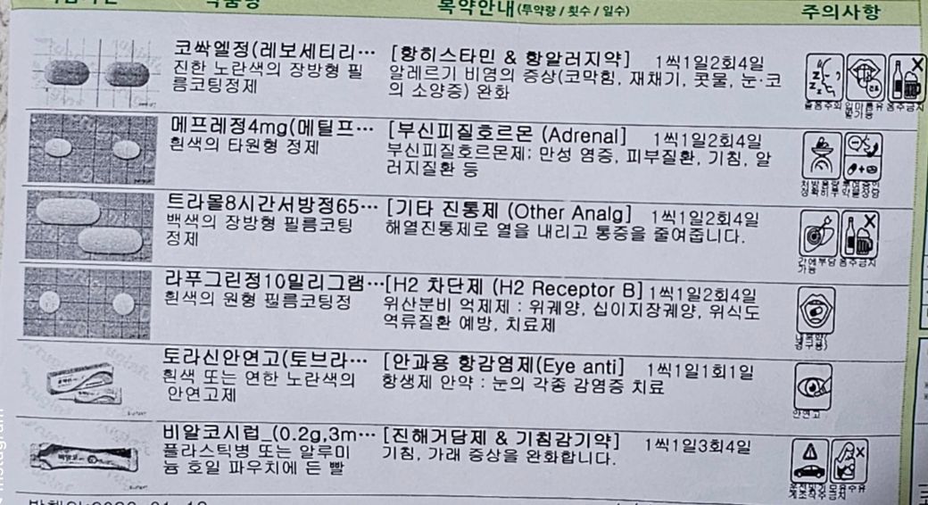 처방약에 트라몰8시간서방정이라는 해열진통제가 들어있긴 하지만 나프록센 성분의 탁센연질캡슐과는 서로 문제되지 않기 때문에, 걱정하시지 않아도 괜찮습니다