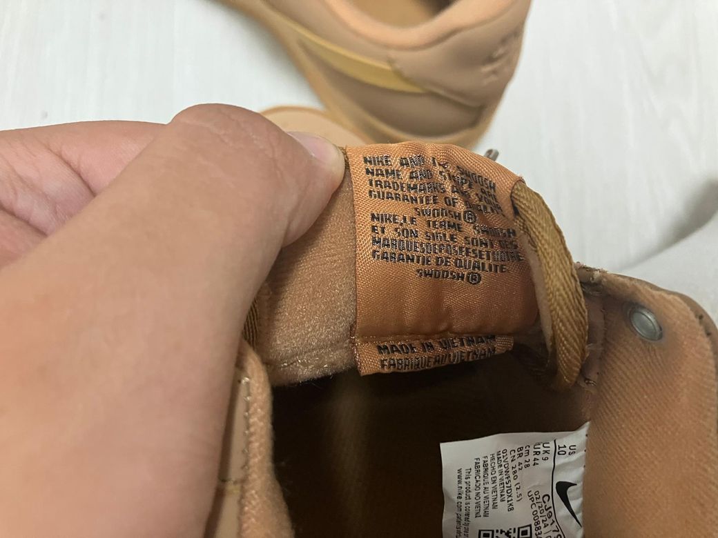 사진상의 원단 질감, 전체적인 봉제 및 텍스트, 박스 정보 등이 정품 기준에 일부 부합하지만, ‘누벅/스웨이드 갑피가 아닌 일반 가죽’이라는 점은 확실히 의심될 수 있습니다. 정품 인증을 받았다면 공식 유통망(정식 나이키 스토어, 인증 플랫폼)에서 비교 검증하는 것이 최선이고, 민짜 가죽 느낌이 강하다면 제품이 다른 라인의 에어포스나 커스텀일 수 있으니 구매처에 문의해보시는 게 좋습니다.