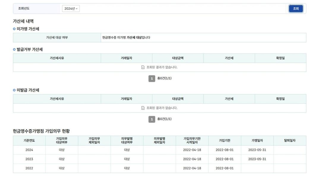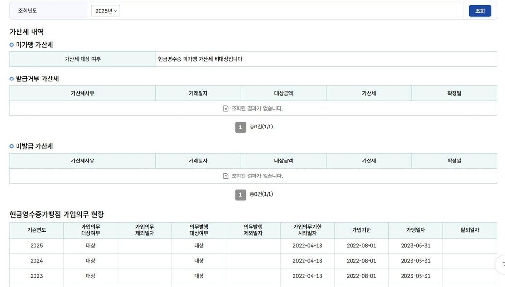홈택스 현금영수증 가맹 가산세 대상 궁금해요.