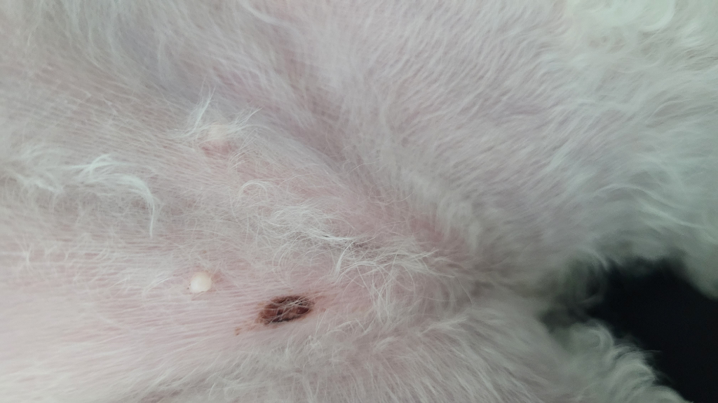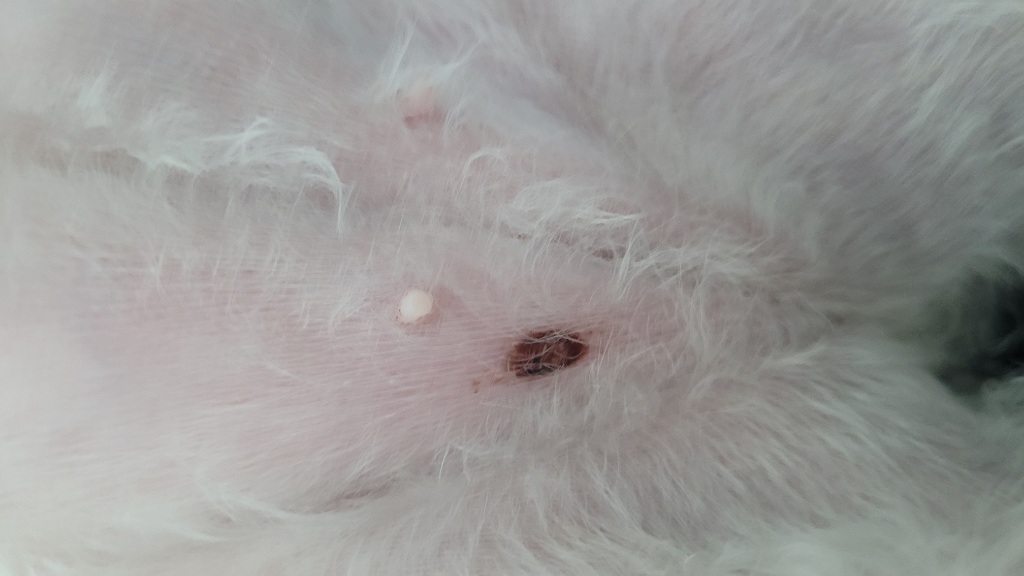 다쳤거나 뾰루지 같은게 터진 양상으로 보이지만 정확한건 직접 보고 판단해야 합니다. 자꾸 긁으려고 하거나 다른 증상이 동반된다면 동물병원에 데려가서 주치의의 확인을 받으시기 바랍니다.