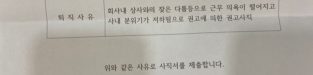 이 사직서에 제가 싸인을 해야하는게 맞는건지
