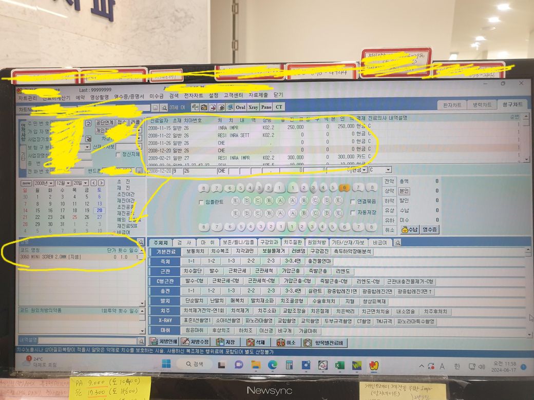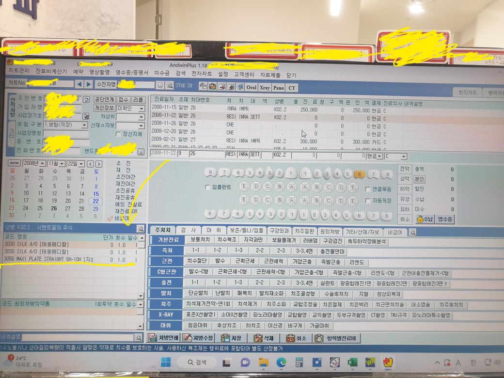 오른쪽은 말씀하신 것처럼 인레이 치료 받은 기록들이고 왼쪽 아래는 교정치료 관련인데 정확히 저 차트 시스템을 모르니 왜 저렇게 화면이 뜨는지는 설명드리기가 어렵습니다.