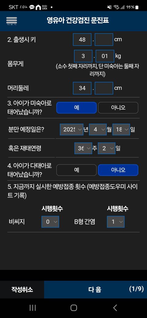 영유아검진 문진표작성 맞게 잘 작성 된건가요?