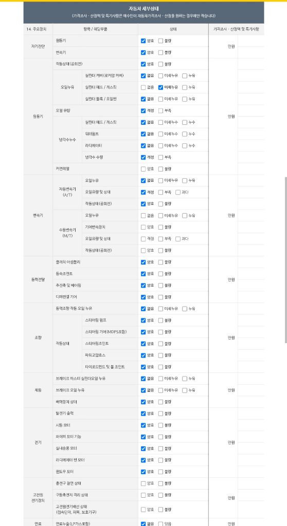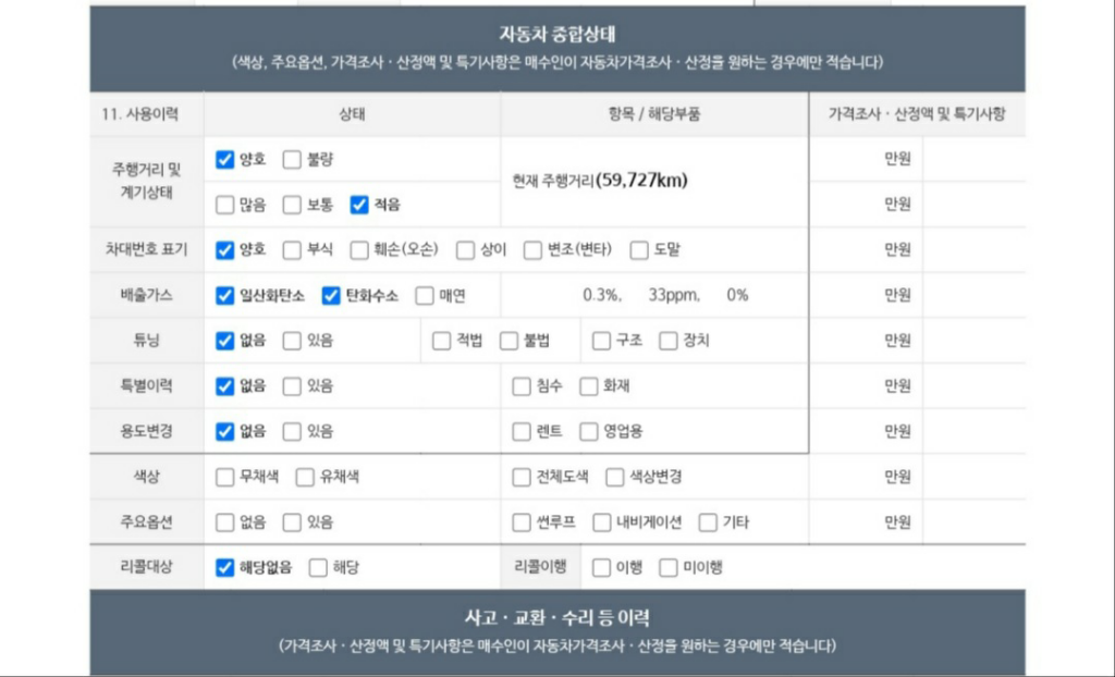 외판 수리가 많네요.. 구동쪽 문제가 없다면 영업용으로 운행하시는데 전혀 지장 없어보입니다