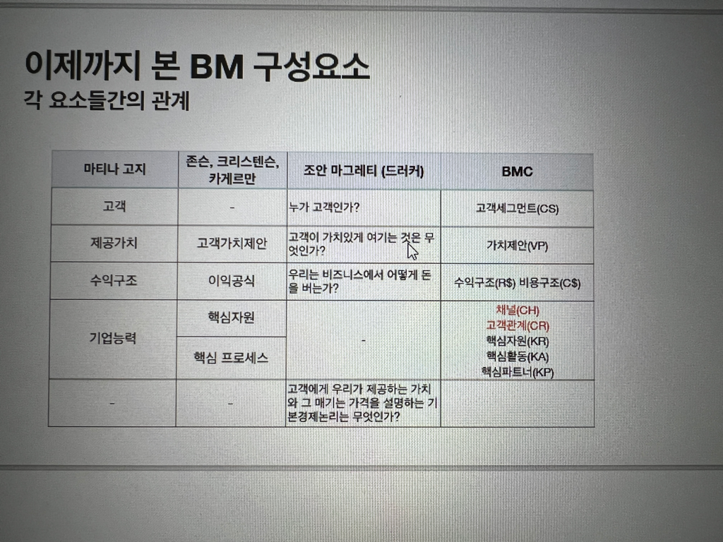 사업모형을 평가할때, 어떤 요소가 가장 핵심인지에 대해 학자마다 의견이 다른 것 같습니다.