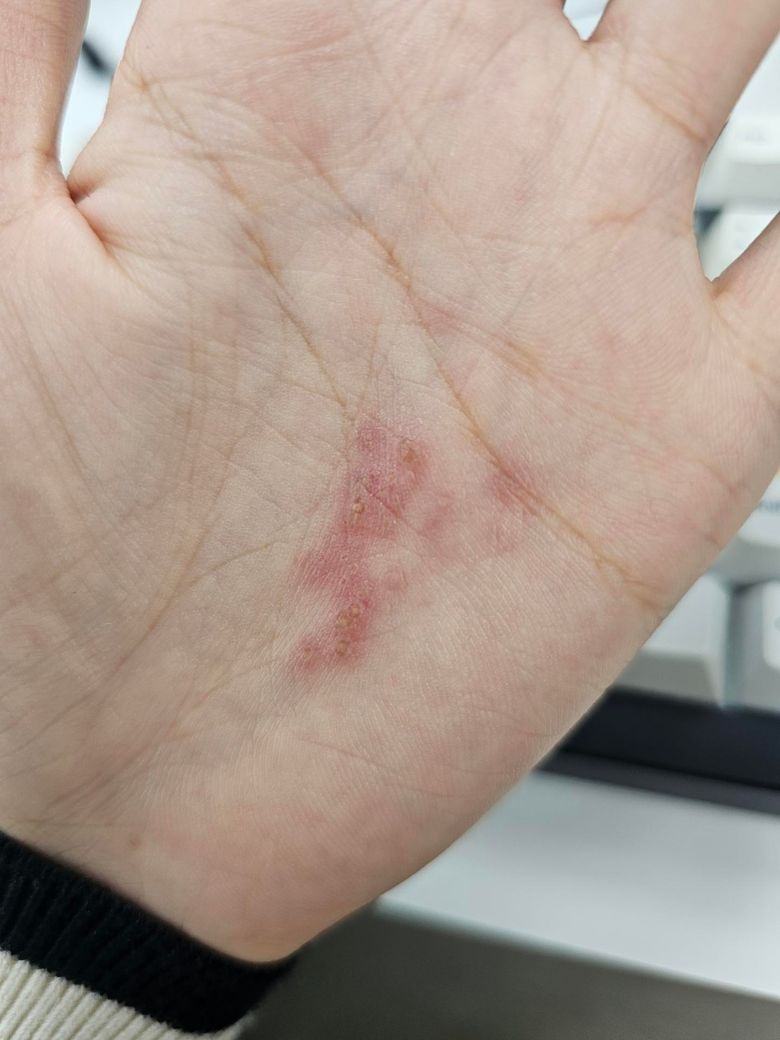 저번 토요일(8일) 오전에 갑자가 손바닥에 열감이 느껴지면서 엄청 간지럽더니 물집이 여러개 생겼습니다. 그러더니 손가락과 팔, 팔꿈치에도 자잘하게 몇개씩 물집이 생긴 상태인데요. 월요일 저녁에 피부과 진료를 보고 한포진 이라는 진단과 먹는약과 연고를 처방 받아왔습니다. 물집이 생긴 이후로는 간지러움은 없고 손바닥에 있는 물집 자리만 열감과 닿았을 때 따가운 느낌이 드는 정도입니다. 근데 팔쪽에 난 물집이 점처럼 검게 변했는데 무슨 문제가 있는건지 신경이 쓰입니다. 거기다 손바닥 물집의 경우 물집 안이 물과 함께 하얀색 같은게 보여서 나아가고 있는 상태에서 생기는 자연스러운 변화인건지 아니면 혹시나 악화되어 염증이 생긴건지 걱정이 됩니다.