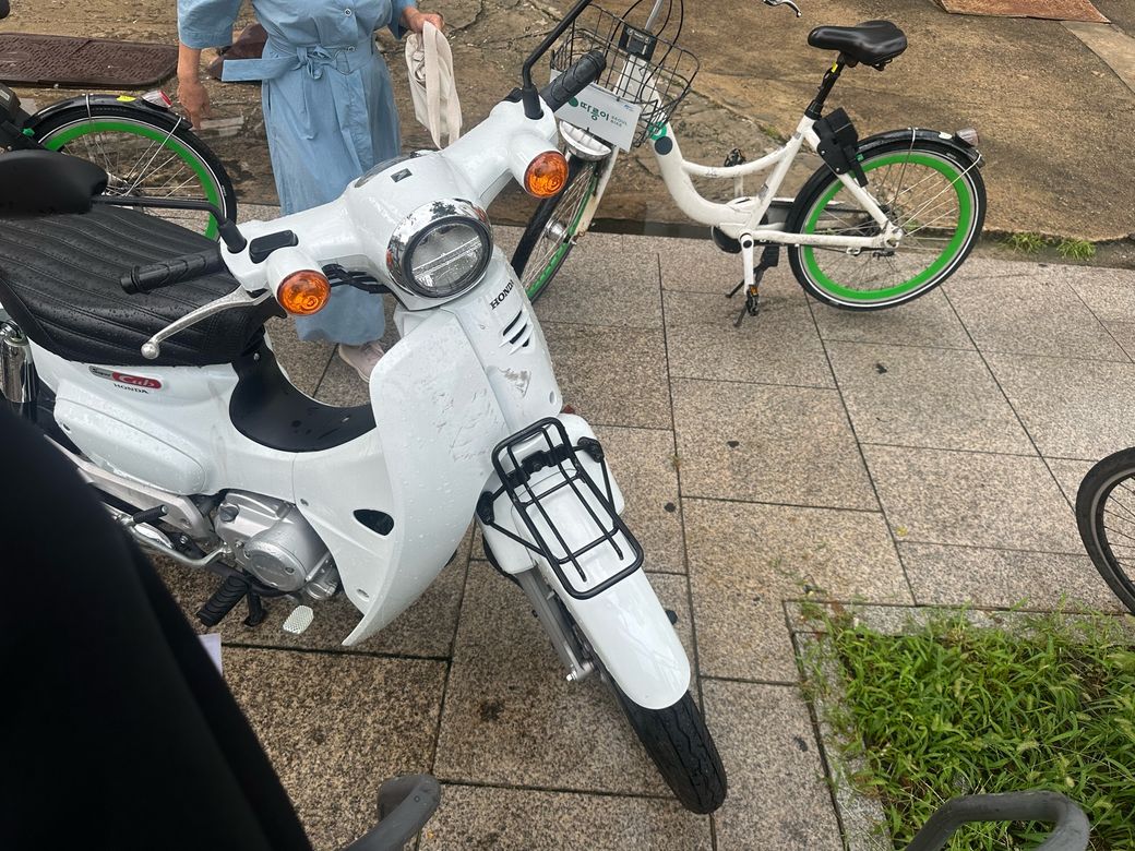 인도 위 자전거 주차장에 세워둔 오토바이 사고