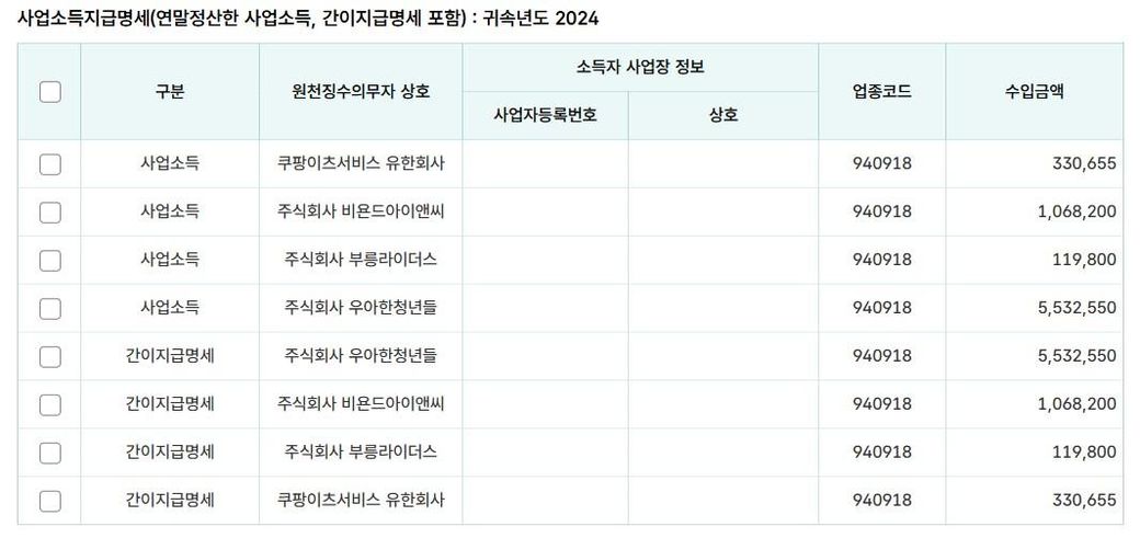 소득 체크하는 란에서 사업소득이라고 쓰여있는거 상단 네개 체크하고나니