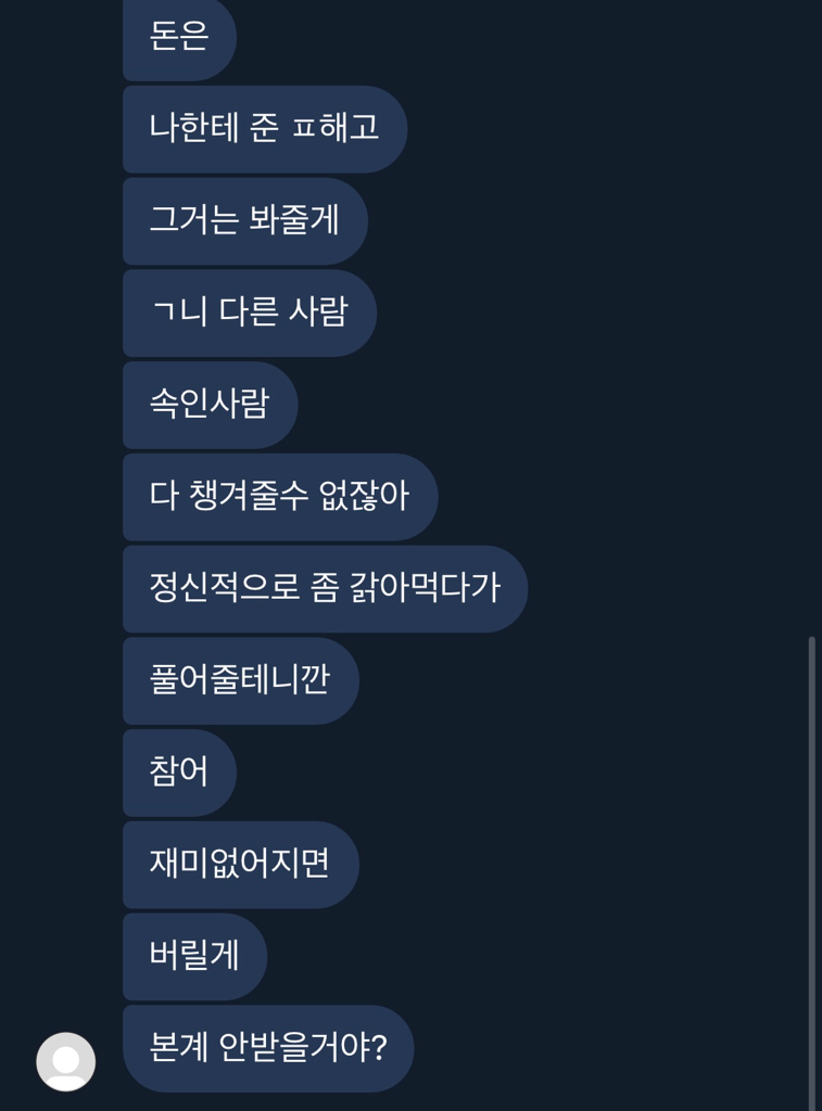 제가 게임 안에서 얼굴 도용을 하고 게임 안에서 사과는 다 받고 용서도 받았는데 어떤 한 사람은 2만원을 입금 해 달라고 하고 인스타 본계정을 맞팔해야 하고 제 얼굴 사진을 보내달라는등 안 그러면 제 인생을 망친다고 협박합니다 그 사람은 제 학교,나이,사는지역,전화번호,인스타본계정도 알고 있는데 본계정을 맞팔해주면 제 팔로워에 있는 제 친구들한테도 얘기가 다 들어갈까봐 너무 무섭고 두렵습니다 제가 힘들어 할 입장 아닌것도 아는데 저 진짜 이 일 이후로 반성도 하고 있고 죄책감 가지며 살고 있는데 이 사람은 저랑 일을 해결할 마음이 없어 보이고 돈이나 제 정신적으로 저를 계속 괴롭히다가 재미 없어지면 버린다고 해요.그렇다고 이걸로 신고를 하기엔 제가 도용을 했으니까 제가 더 불리해지는게 당연한거 아닌가요 제발 도와주세요 너무 힘들어요 작은 일도 아니라 부모님께 얘기하는것도 너무 두렵습니다
