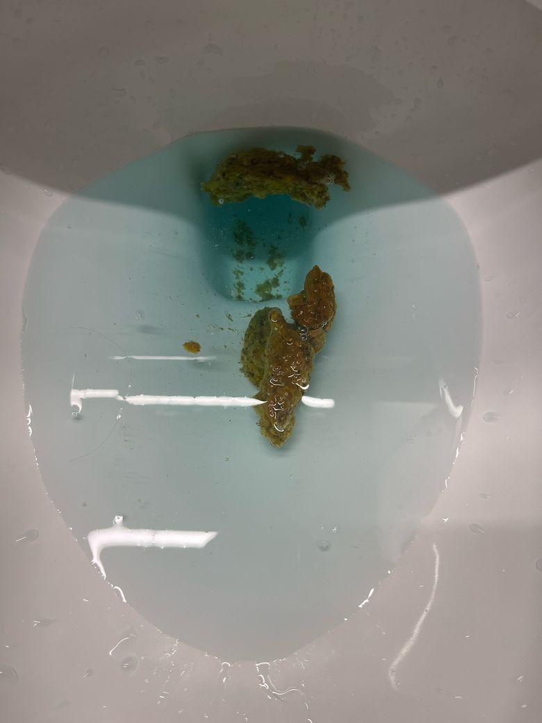 사진처럼 변이 물에 뜹니다. 어제 흰밥, 사과, 바나나, 고등어만 먹었을 정도로 특별히 기름진 식사는 하지 않았거든요…