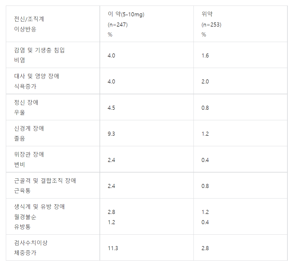 이상반응 중 질문자님과 동일한 이상반응이 있기에
