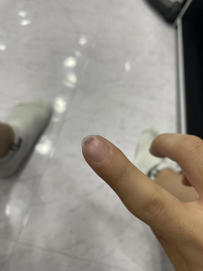 손톱 아래 찢긴 상처가 있을수도 있으니 신체진찰 받아보시기 바랍니다.