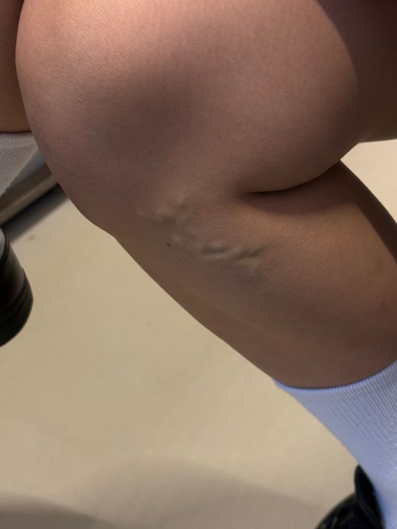 혹은 거미상 정맥이라고 해서 붉거나 푸른 실핏줄이 거미줄 처럼 퍼지며 나타날 수 있고 하지정맥류보단 얕고 튀어나오지 않은게 특징으로 미용적인 문제에 가깝지만 진행되면 불편감이 있을 수 있습니다.
