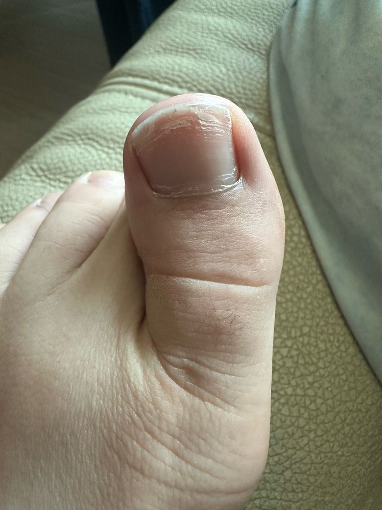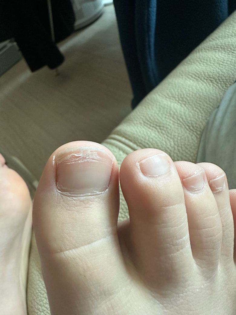현재 모습은 반복적인 압박이나 신발 마찰, 일시적 성장장애로 인한 가로선(Beau’s line), 혹은 단순 표면 건조 및 미세 외상에 더 합당해 보입니다. 양측에 유사하게 나타났다면 전신적 스트레스나 일시적 컨디션 변화 이후 생긴 성장선 가능성도 있습니다. 리튬, 아리피프라졸, 부프로피온(벨부트린)과 같은 약물은 드물게 손발톱 변화를 유발할 수 있으나, 사진과 같은 국소적 표면 긁힘 형태는 흔한 약물 부작용 양상은 아닙니다.