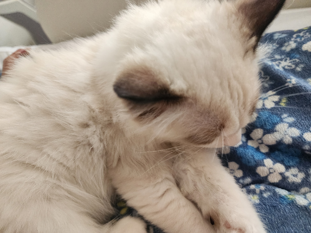고양이가 가려워서 긁거나 혹은 아에 명확하게 털이 빠져서 구획이 나뉘어져 있는 것 처럼 보이는 경우에는 피부병일 가능성이 있으니 유심히 잘 지켜보시기 바랍니다.