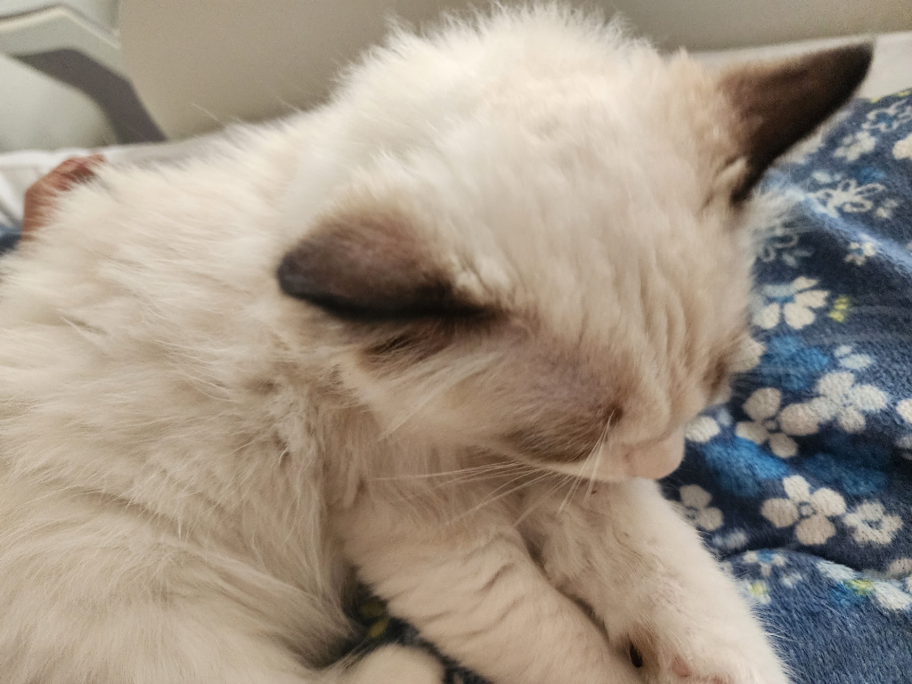 고양이가 아직 어리기 때문에, 질환이나 감염의 가능성은 다소 낮아보입니다. 피부상태를 좀 더 지켜보시길 바랍니다.