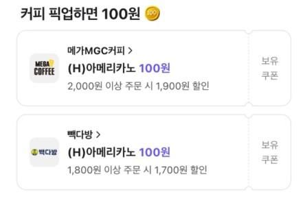 배달의 민족 쿠폰 중에 빽다방, 메가커피 픽업 전용 쿠폰이 있는데요.