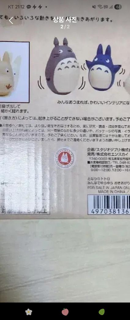 지브리 정품 피규어의 경우 출시 시기나 제조 공장(일본·중국 등)에 따라 로고 색상과 인쇄 질감이 다를 수 있습니다.