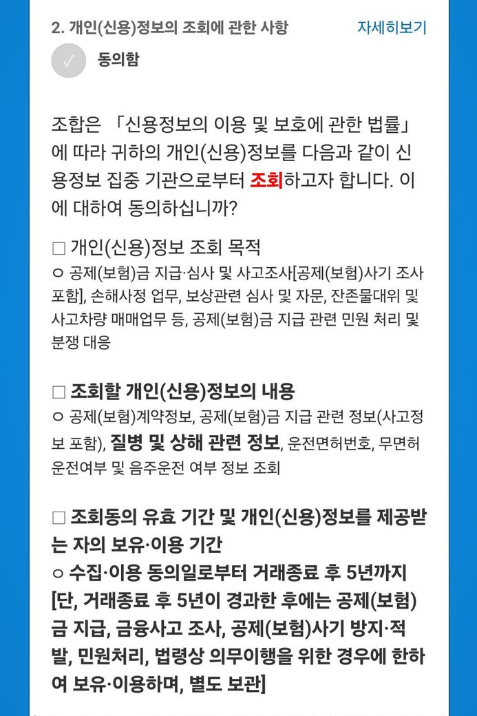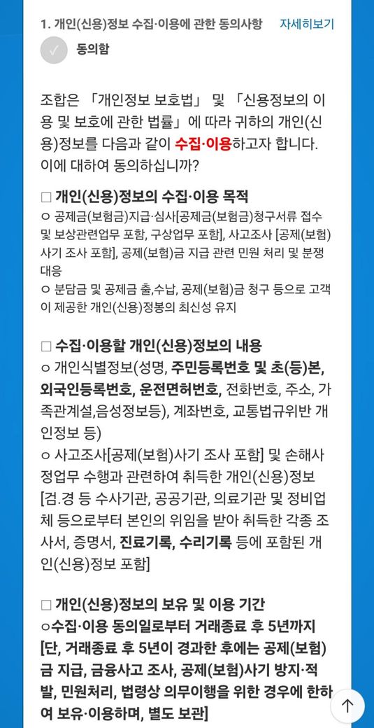 위 개인정보동의는 사고처리를 진행하는 것이기 때문에 동의해주셔도됩니다.