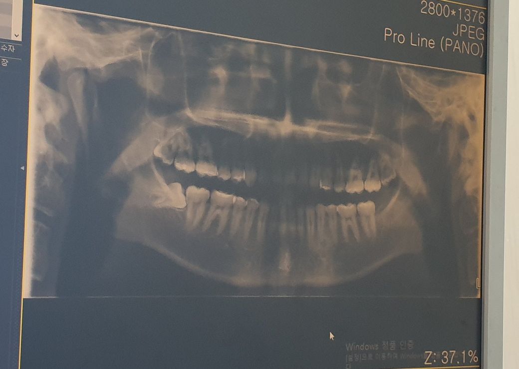 현재 오른쪽 아래 부분매복된 사랑니로 보입니다. 이런 상황에서도 사랑니를 무조건 발치를 해야 하는 것은 아닙니다.