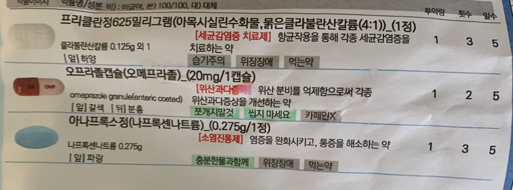 현재 피부과와 치과에서 처방받은 약을 먹고 있는 경우 치과약의 아나프록스정이 이지엔식스와 중복되기에 이지엔식스를 추가로 복용하지는 않길 권장드립니다. 치과약을 복용하고도 통증이 심한 경우에는 아세트아미노펜 성분의 진통제를 추가로 복용하길 권장드립니다.