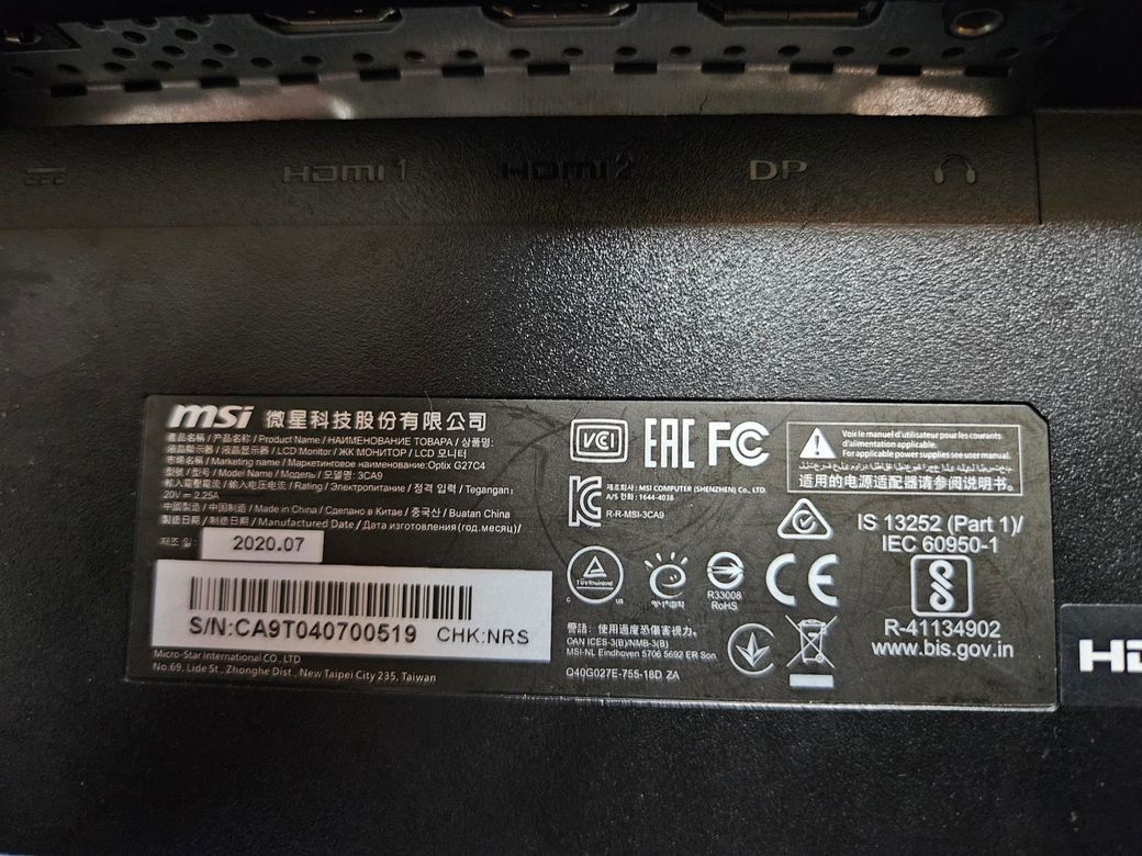 msi 3ca9 모델 모니터를 중고로 구매하였는데 전원선이 없습니다