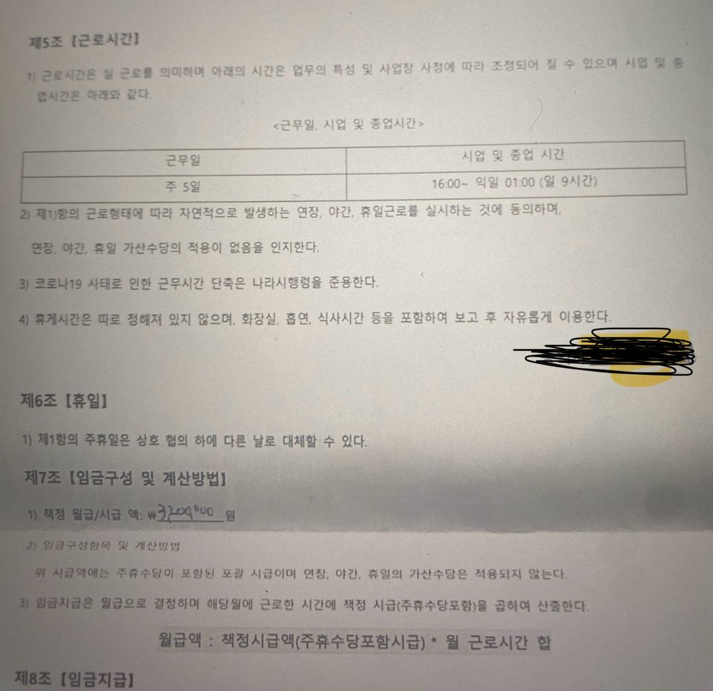 근로계약서 상 잘 받고있는지 궁금 합니다.
