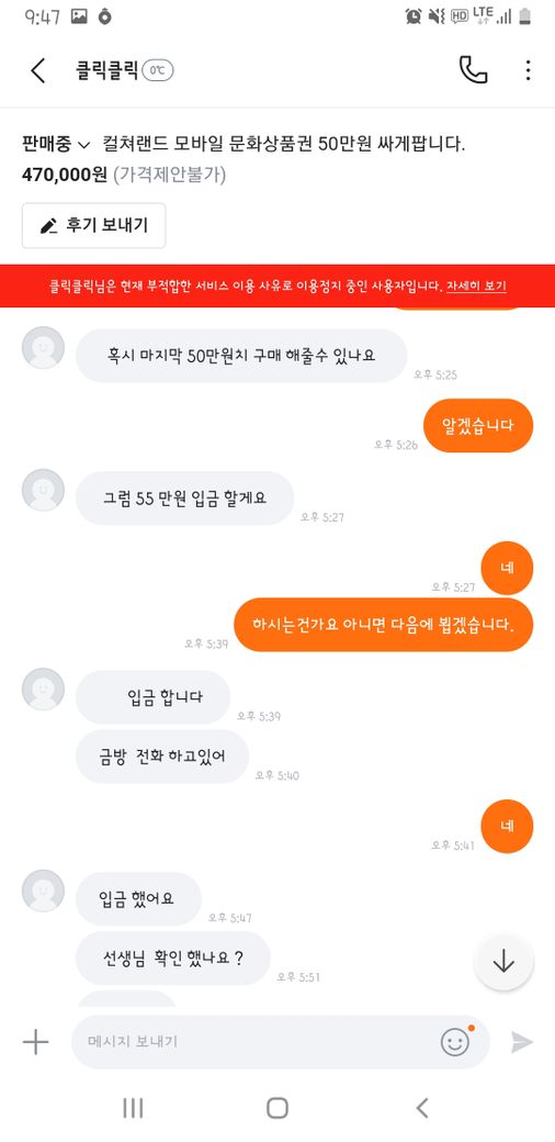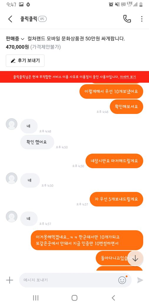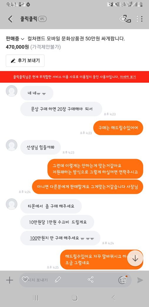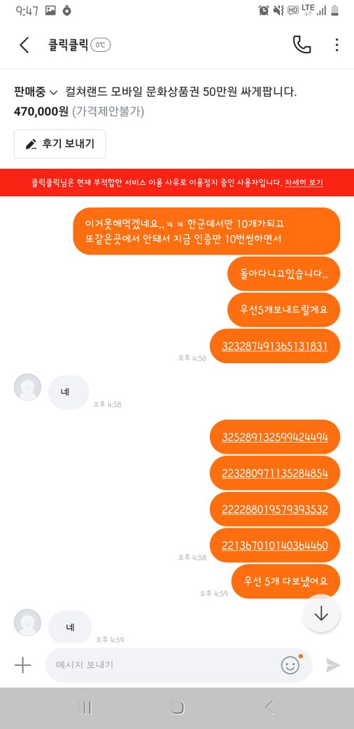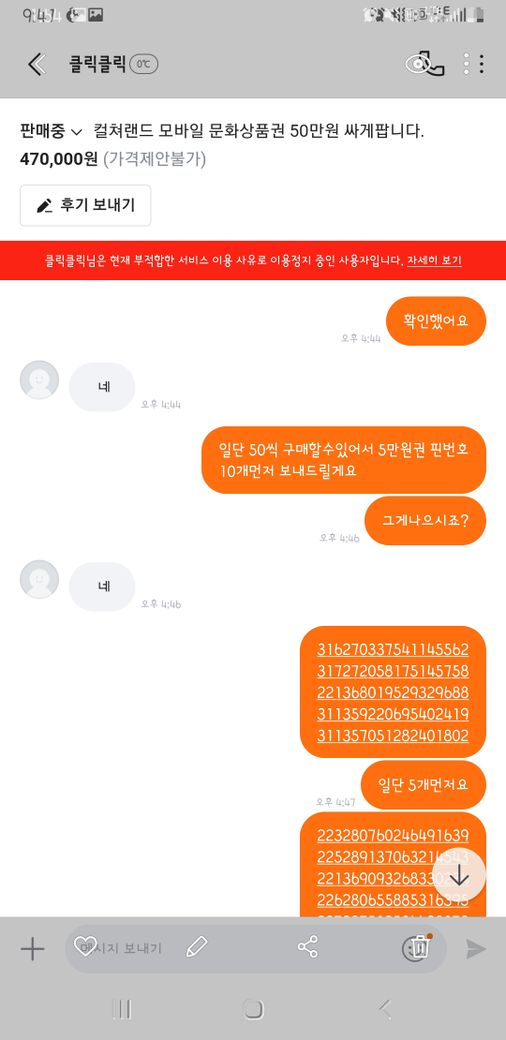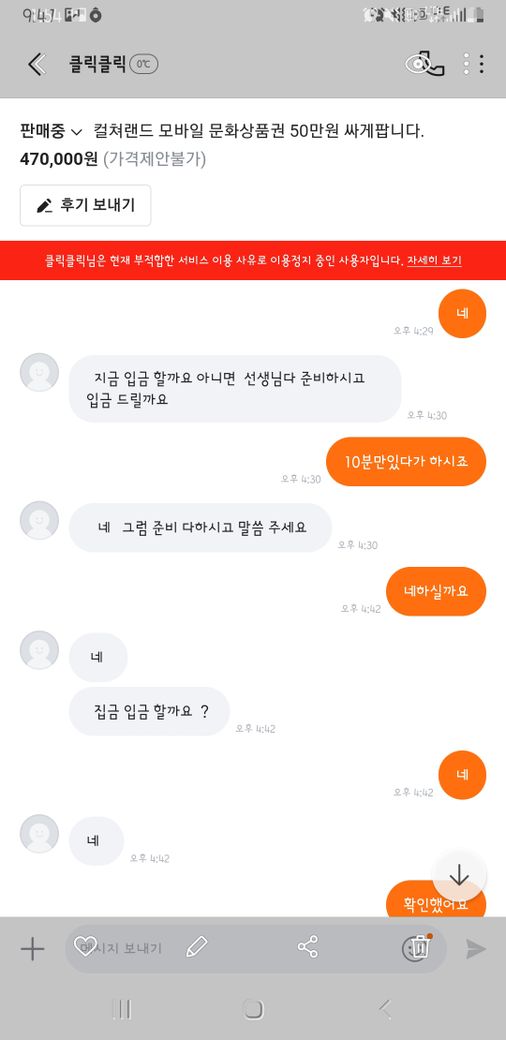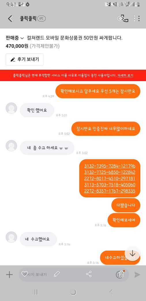 상품권 핀번호를 보내지 않아 신고를 당하여 계좌가 정지되었