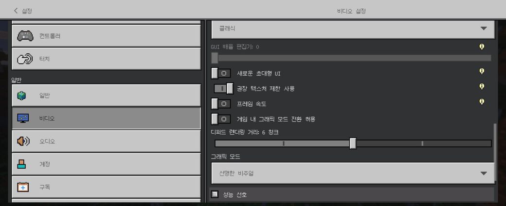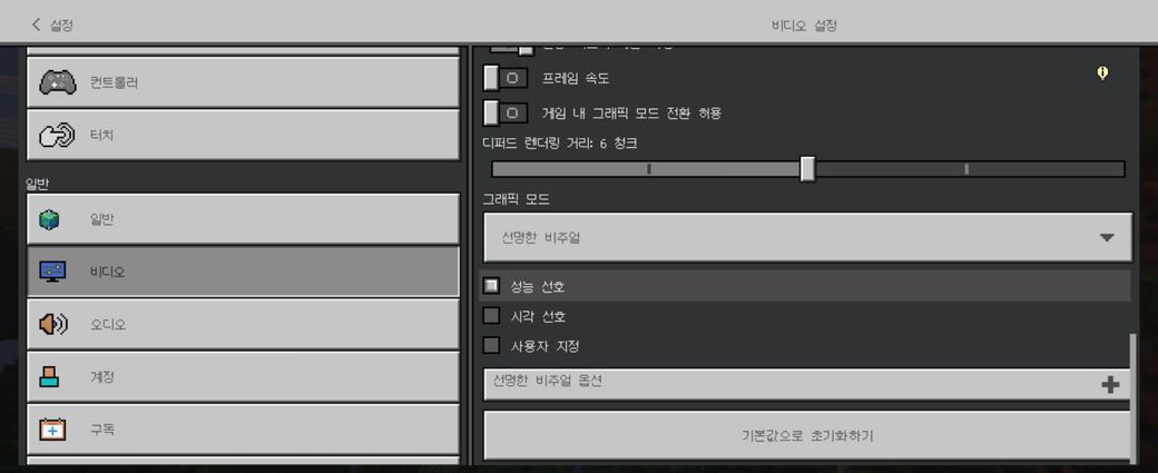 모바일 마크하는데 예전과달리 안개가 너무많아지 고 렉도 많이 걸리고 태양도 너무 밝아지고 그 뭐 쓴 것처럼 물에 태양빛이 반사되고 빨라지는 버튼누르 면 화면이 빨라진 느낌이 드는 효과가 나오는데 안나 오고 앞도 너무 안보이고 아이템창이랑 상자뜨는창 도 너무 작아져서 답답해서 그러는데 어떻게 해야 예 전처럼 바꿀수있나요