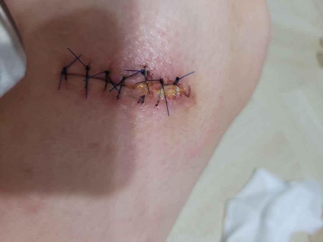 이후 고름이 생겨 긁어내고 재봉합 했습니다