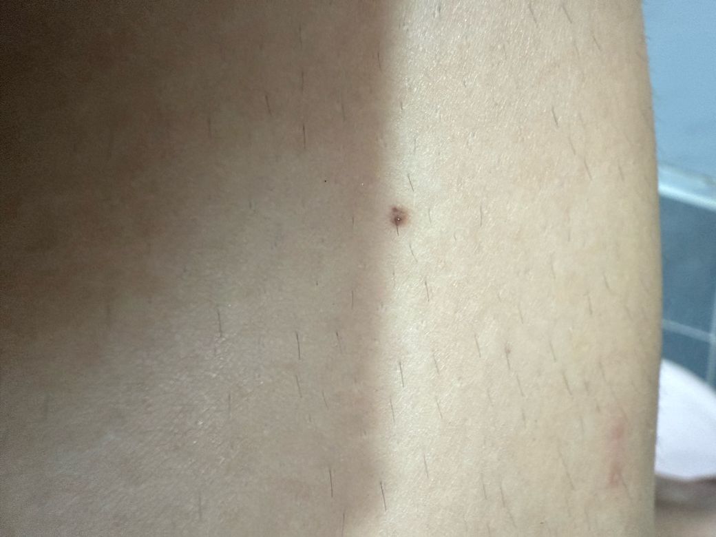 흑색종인가요?? 원래 여기 점이 있었는데 어느 날 간지럽기 시작하더니 튀어나오고 살짝, 그리고 살짝 커졌어요 6mm는 안 넘는거 같아요