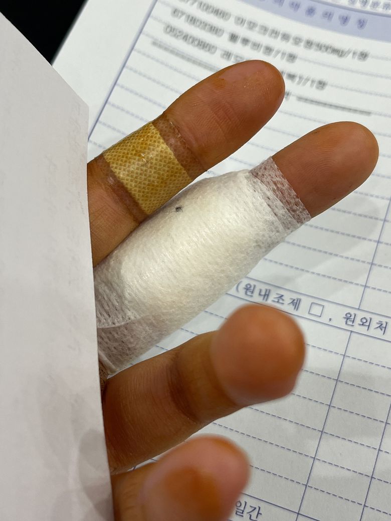 (거즈 교체 전 찍은거라 소독할거에요!!!!)