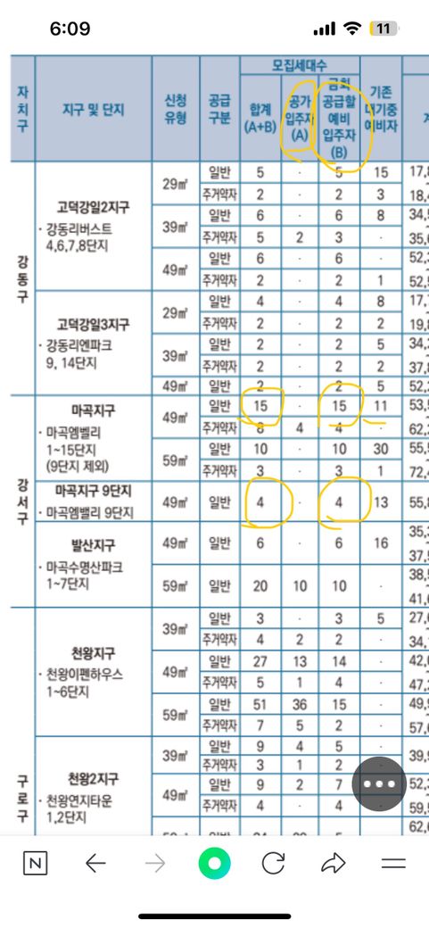 마곡의 경우 기존예비입주자 11명 먼저하고 나서 그다음 예비자 15명 뽑는다는 말이고,