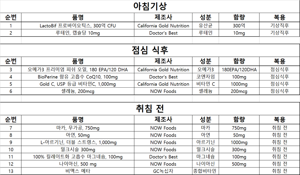 먹는시기와 함께 아래 영양제를 먹어도 되는지 확인 부탁드립니다.