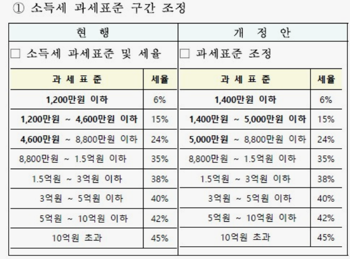 어떤 월급계산기를 보셨는지 알 수는 없지만, 2023년 1월 1일 이후 발생 소득분 부터는 아래와 같은 개정안대로 개정되어 세율이 적용되고 있습니다.