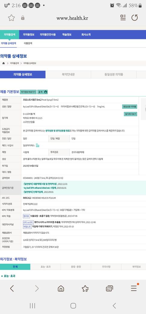 진해거담제 2시간 간격으로 중복 복용한 경우