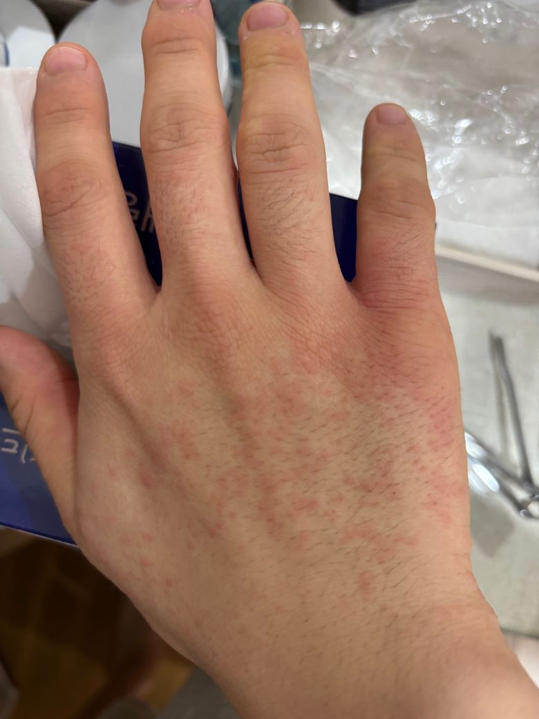 일요일부터 뭘 잘못 먹었는지 얼굴 미간 쪽이 간지려워서 끌었는데 월요일에 미간쪽이 빨갛게 올라오고 병원가니 알레르기 라고 하더라고요 근데 얼굴이 다 괜찮아지고 손으로 내려오면서 갑자기 이러게 됐습니다 병원에서는 손도 알레르기라고 하는데 왜이럴까요? 17년 살면서 알레르기는 난생 처음입니다