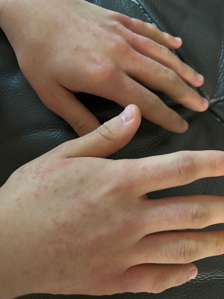 알레르기가 맞나요? 얼굴에서 손으로 번졌습니다.