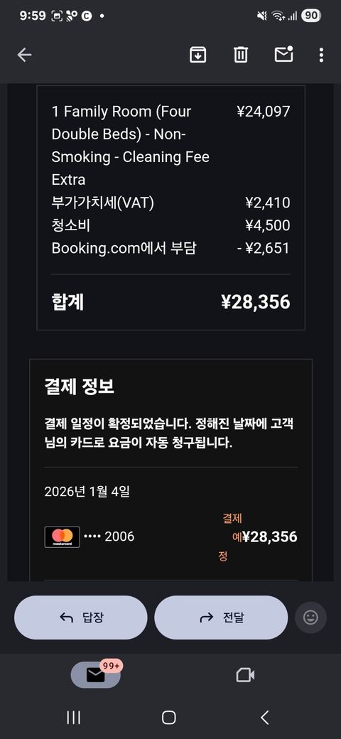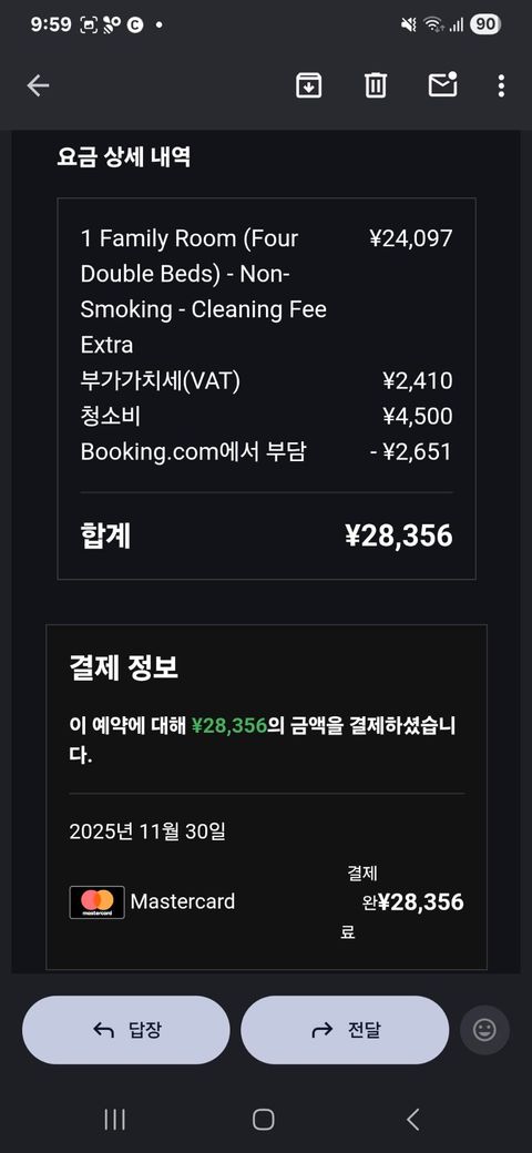부킹닷컴은 결제 즉시 승인만 걸리고 실제 출금은 호텔이 요금 청구를 확정하는 시점에 빠져나가는 경우가 많아요